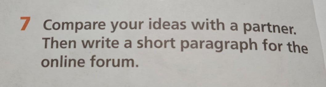 7 Compare your ideas with a partner. Then write a short paragraph for the online forum.