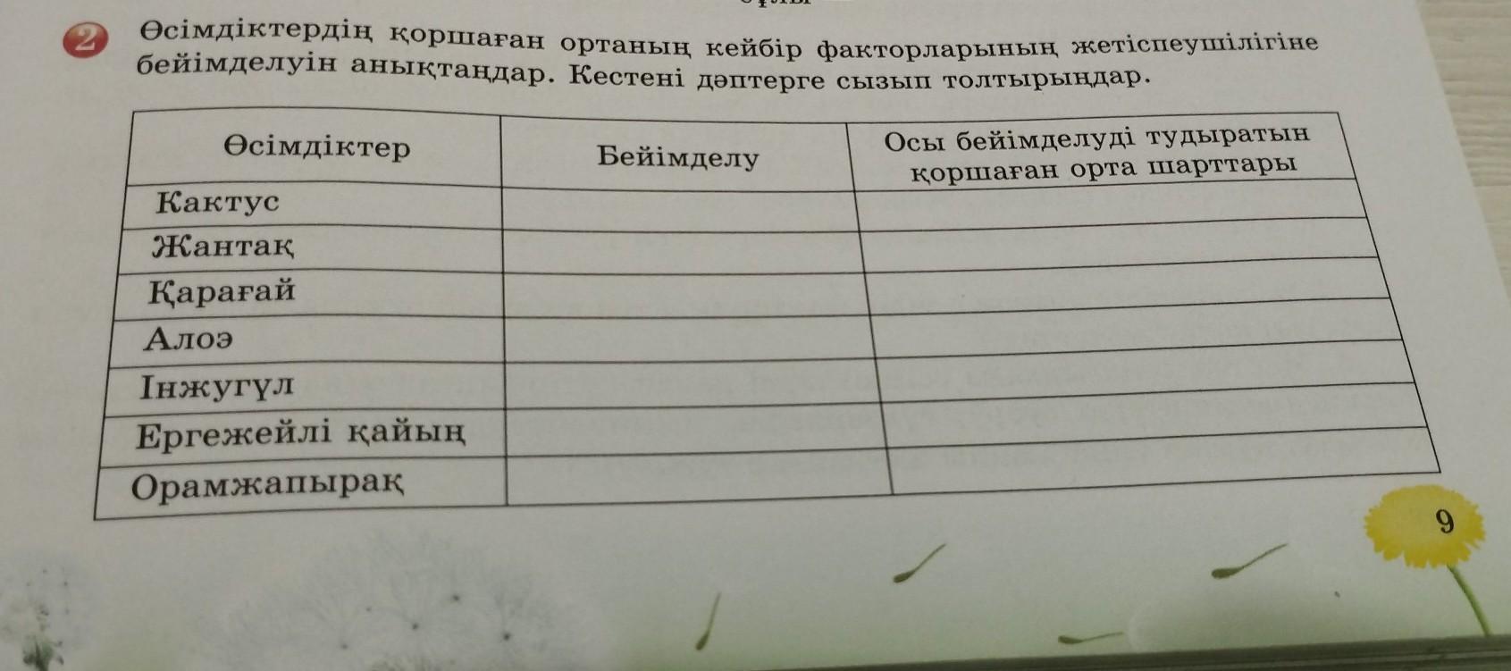 Кактус и верблюжья колючка - приспособление к недостатку влаги, запасают много влаги в стебле, мало отдают, за счет строения листьев - иголок. Глубокие, очень глубокие корни для добычи влаги, возможность накапливать влагу из воздуха.