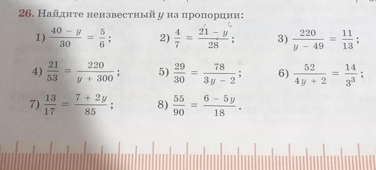 5) 29/30=78/(3y-2) ⇒ 29(3y-2)=30·78 ⇒ 87y=2340+58 ⇒ y=2398/87=27 49/87