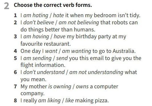 1) hate 2) don’t believe 3) have 4) want 5) send 6) don’t understand 7) is owning 8) like
