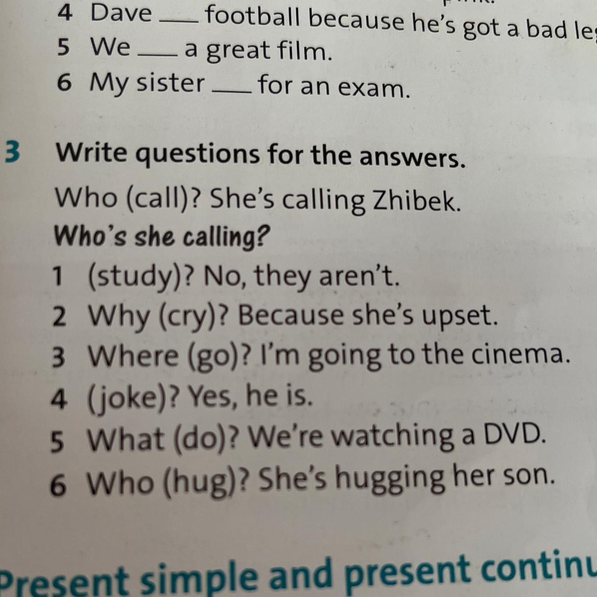 Who (call)? She's calling Zhibek.