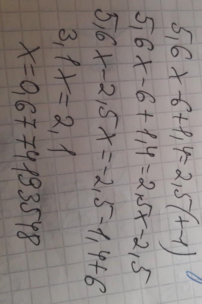 5,6х-6+1,4=2,5(х-1) решите пожалуйста