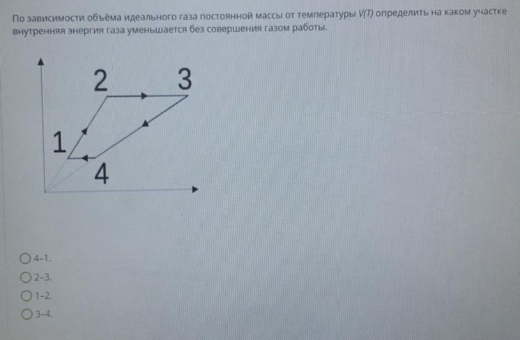 По зависимости объёма идеального газа постоянной массы от температуры V(T) определить на каком участке