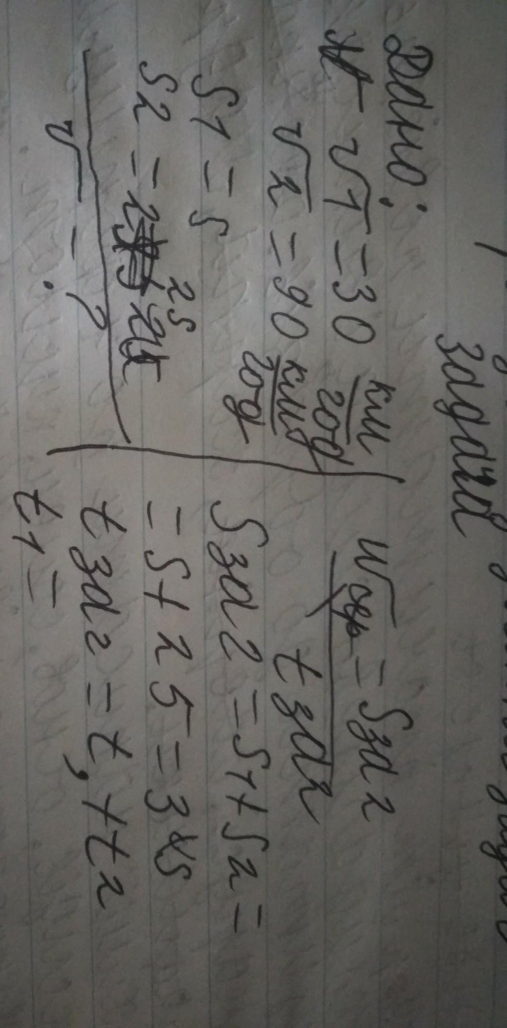 V1=30 км/ч; V2=90 км/ч; S1=S; S2=2S; Vcp - ?