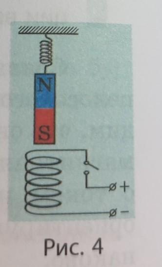 СРОЧНО!!!! 4. Над катушкой подвешен магнит (рис. 4). Как будет вести себя магнит, если замкнуть цепь?