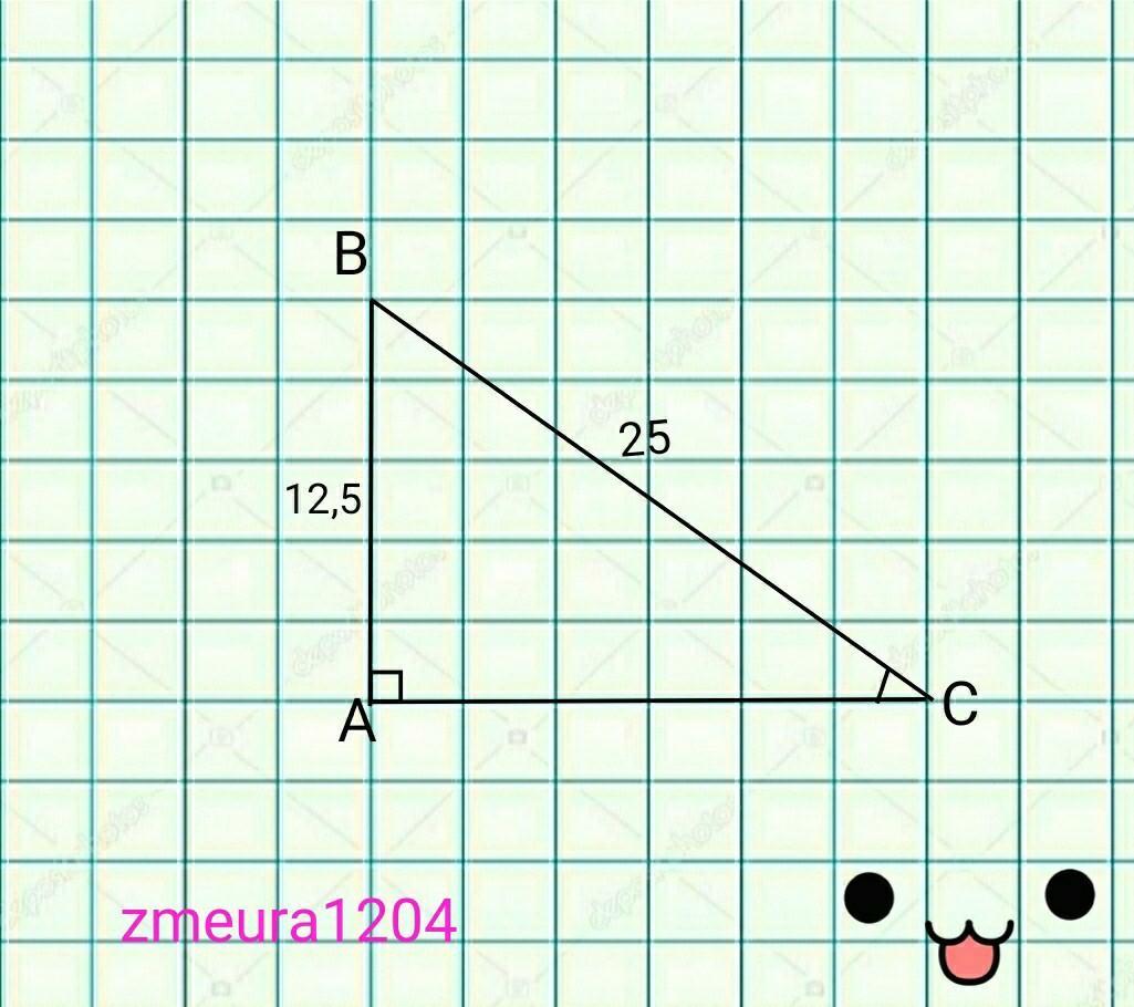 у прямокутному трикутнику гипотенуза и катет мы должны 25 см и 12,5см знайдить кути трикутника