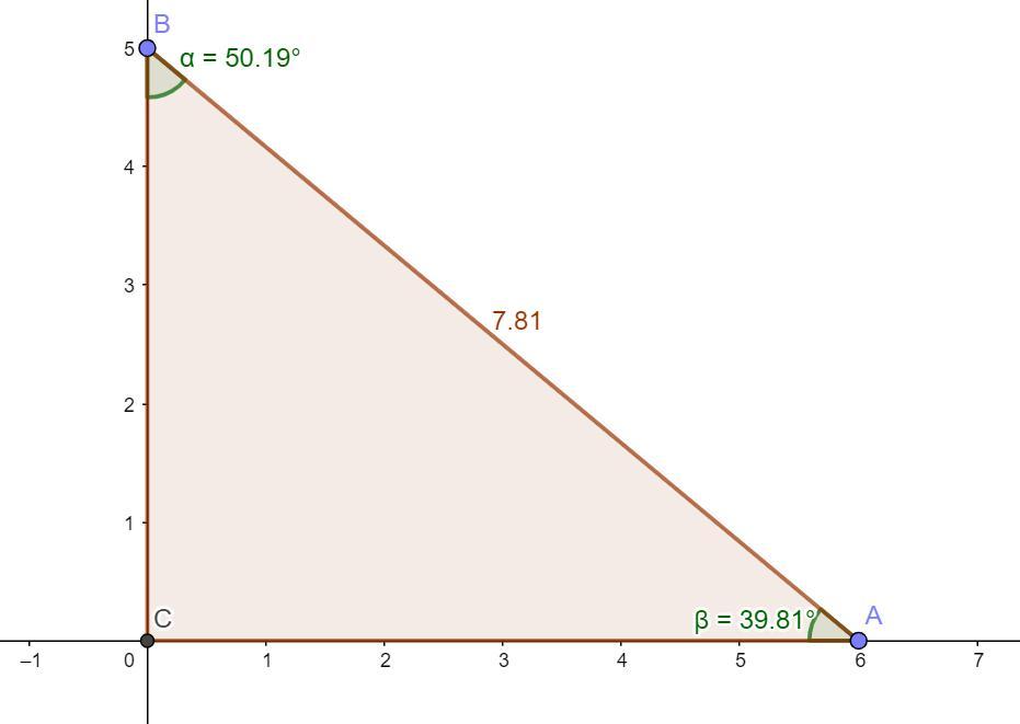 Розв'яжіть трикутник АВС , у якого кут С=90 °, AС=6 см , ВС = 5 см ( кути трикутника , знайдіть точністю до градуса ). Надо срочно