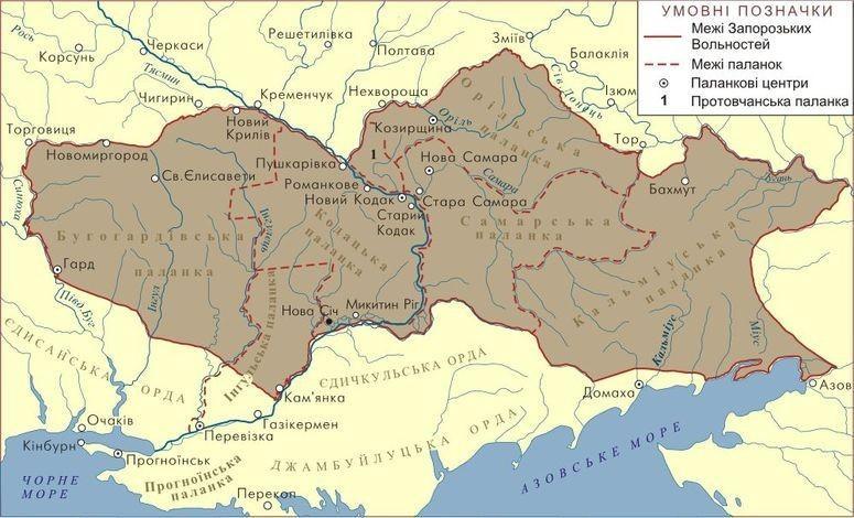 Це Запорізька область(раніше територія Запорізької Січі) 18ст.