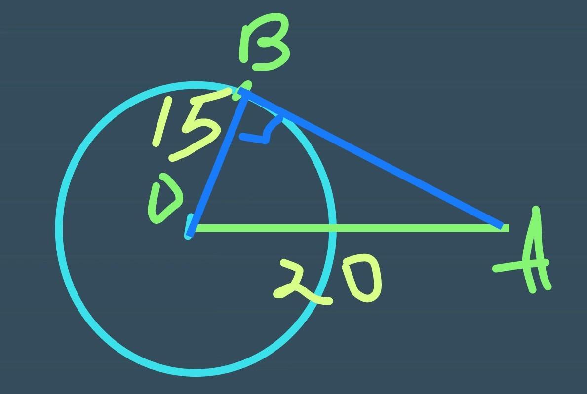 Пряма AB дотикається до кола із центром 0 і радіусом r у точці В. Знайди AB,