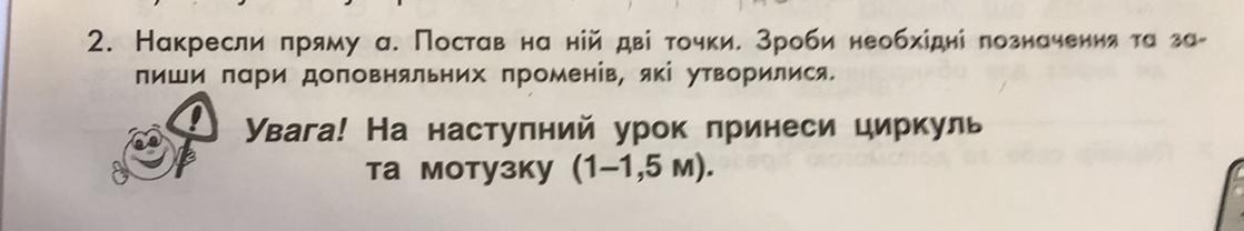 2. Накресли пряму а. Постав на ній дві точки. Зроби необхідні позначення та за