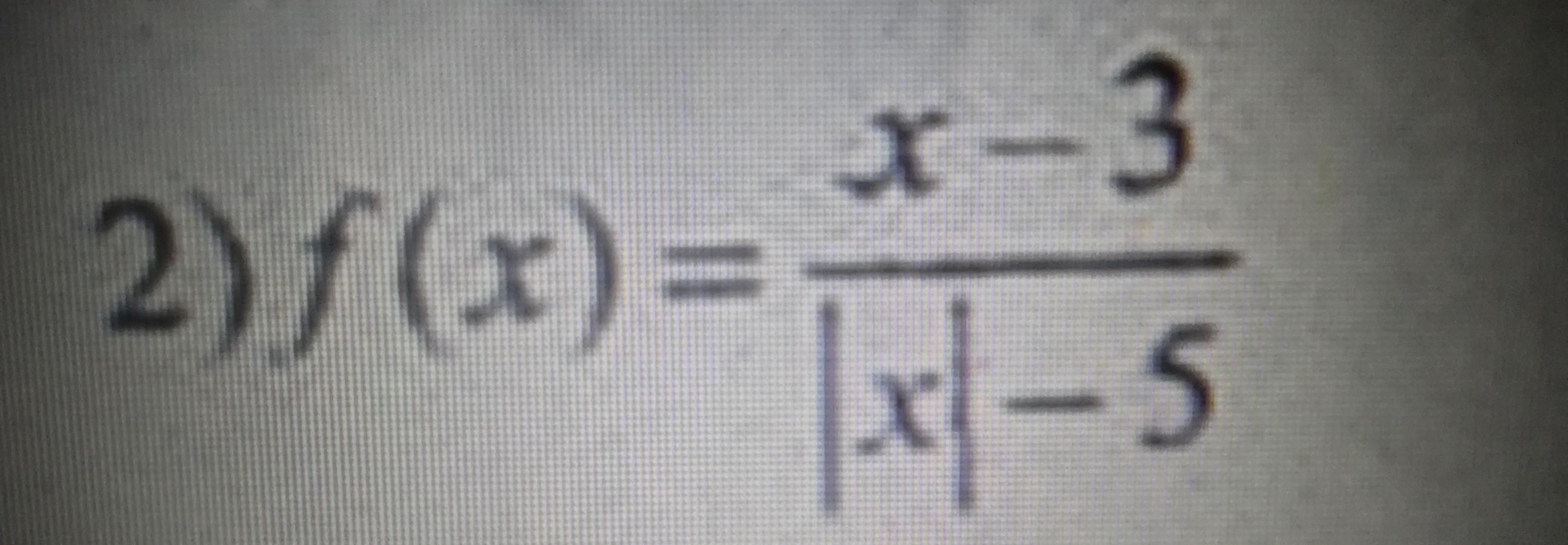 2) f( x ) = ( x - 3 )/( | x | - 5 ) ;