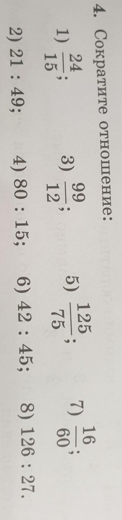 4) 80:15 = 80/15 = 16/3 = 5 1/3