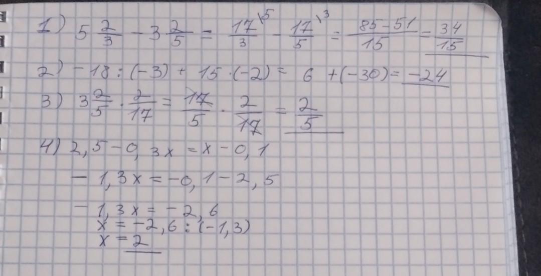1. 5 2/3 - 3 2/5 = 2 14/15