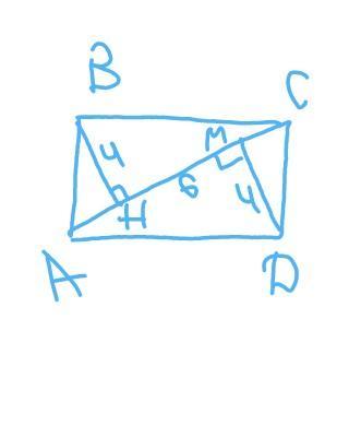 S(ABCD)=AC×BH=10×4=40 cм²,т.к диагональ делит прямоугольник на два прямоугольных треугольника.