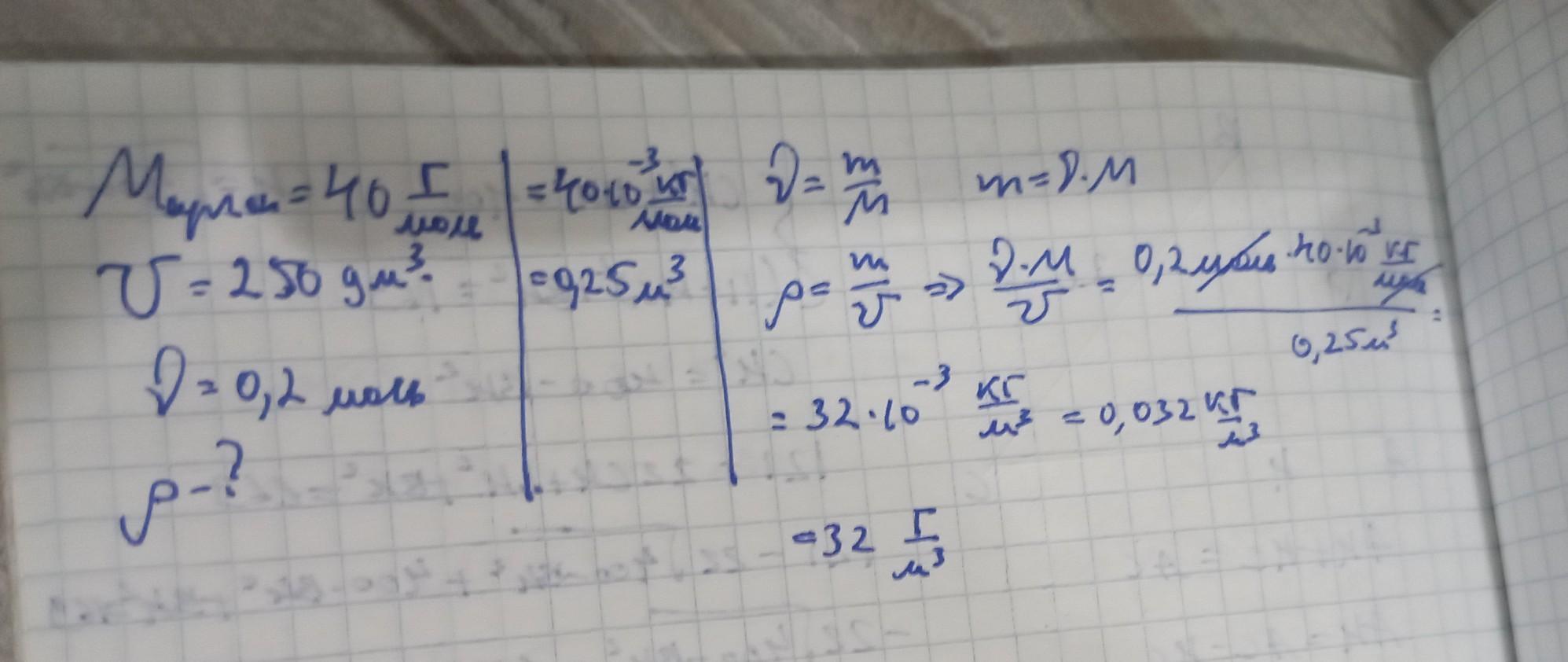 В сосуде объемом V = 250 дм3 находится аргон, количество вещества которого v=0,20 моль. Определите плотность этого газа в сосуде.