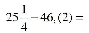 25 1/4 - 46,(2) = 25 1/4 - 46 2/9 = 25 9/36 - 46 8/36 = 25 9/36 - 45 44/36 = -20 35/36