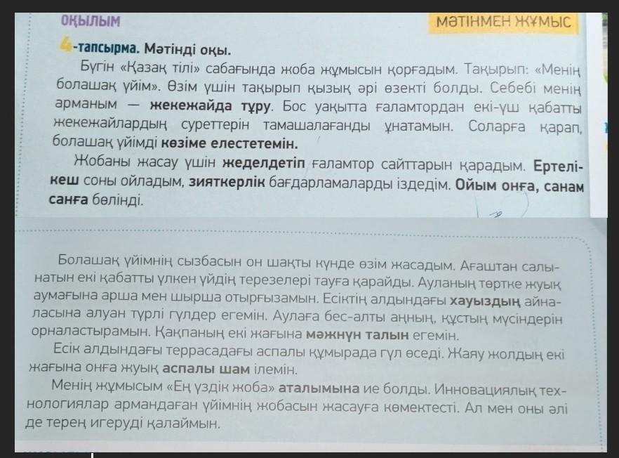 АЙТЫЛЫМ 6-тапсырма. Суретке қара. Суреттегі үйді мәтіндегі Әлібек жасаған үйдің жобасымен салыстыр. Ортақ белгiлерi мен ерекшеліктерін айт.