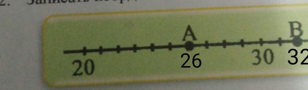 На координатной прямой между двумя отмеченными числами 20 и 30
