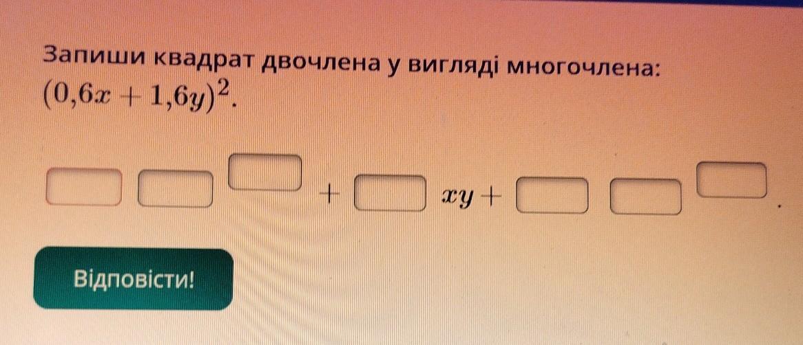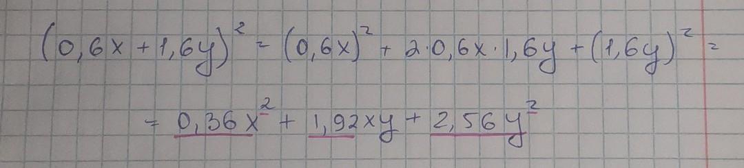 (0,6х+1,6у)²=(0,6х)²+2×0,6х×1,6у+(1,6у)²=