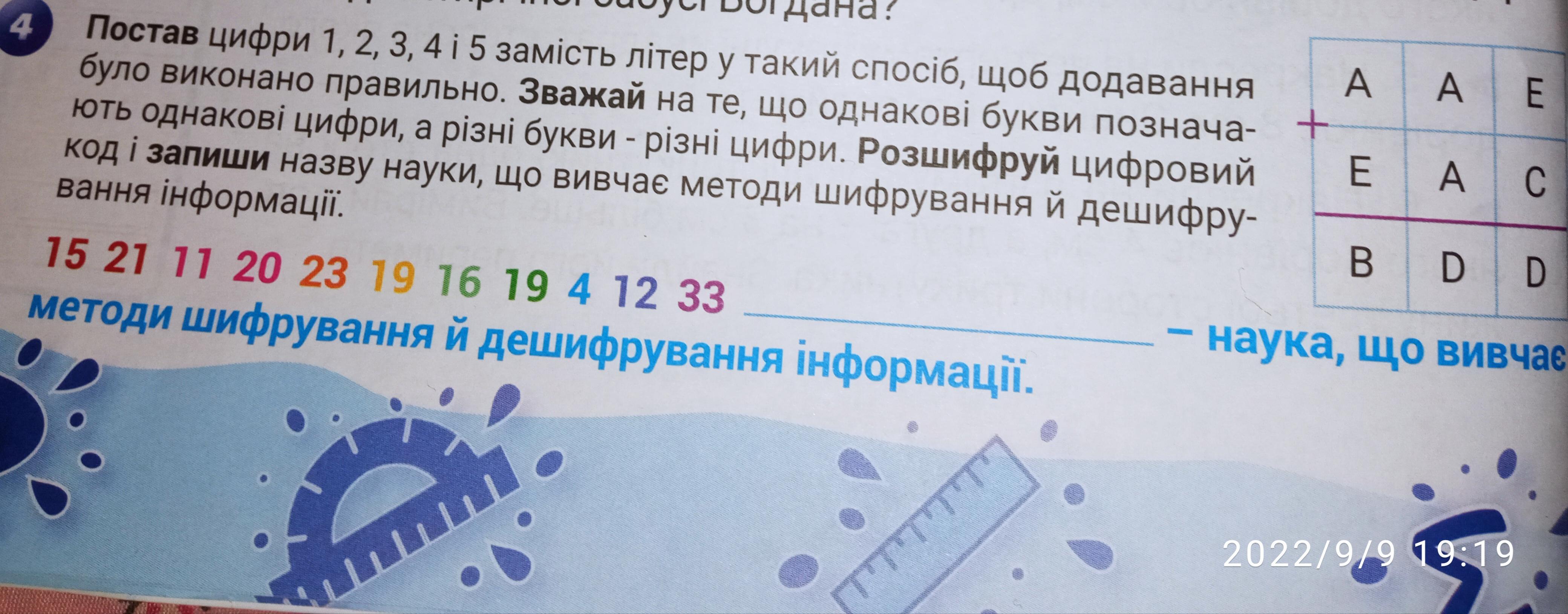 Криптологія -- розділ науки, що вивчає методи шифрування і дешифрування інформації.