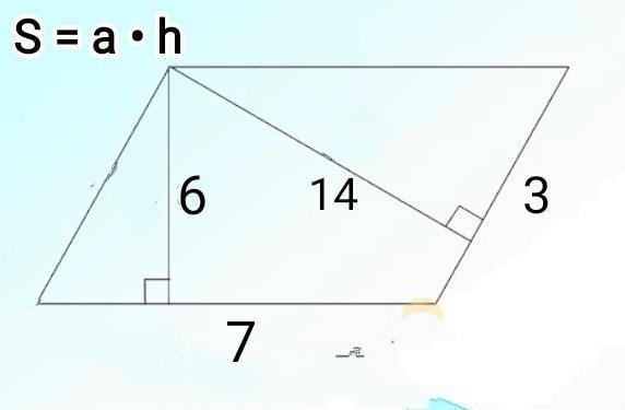 h1 = S/a = 42/3 = 14 (см);