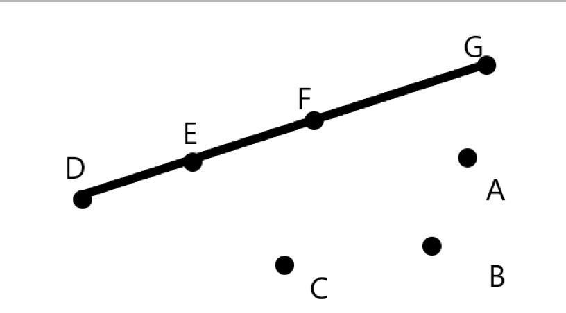 надо начертить прямую и на этой же прямой обозначить 4 точки и 3 точки нележащие на ней