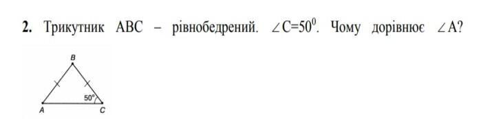 кут а = 50 градусів,адже трикутник різнобічний,а у нього кути при основі рівні