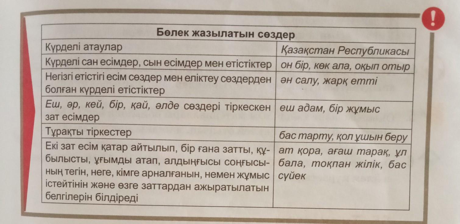 Ответ:бас жүлде,ағаш көпыр,ақ бас,бас жіп,ат қора,асыл тас,ұл бала,қыз бала ,әк сұр,он сегіз.