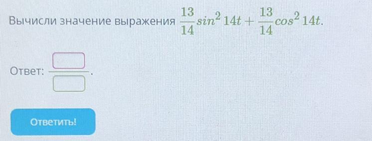 Ответ 13/14. Но я не могу сказать что это точно так как после sin идет 2, а в этом калькуляторе я не смогла поставить двойку после sin, она просто там не ставиться. Надеюсь этот ответ правильный