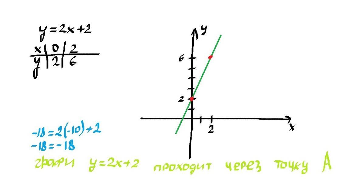 6. а) Постройте график функции у=2х+2. С помощью графика найдите значение функции, соответствующее значению аргумента равному -3. б) Определите, проходит ли график функции через точку А(-10;
