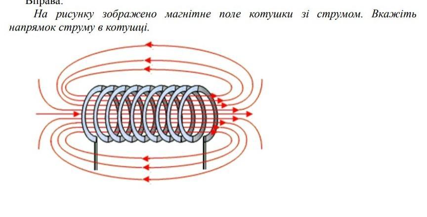 Використовуємо це правило "навпаки": відставлений великий палець спрямовуємо в напрямку ліній магнітного поля всередині котушки, тоді чотири пальці будуть спрямовані вздовж струму у витках