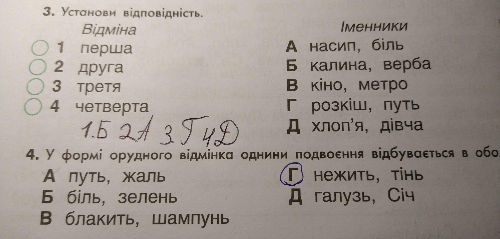Відповідь: 1. б 2. а 3. г 4. д