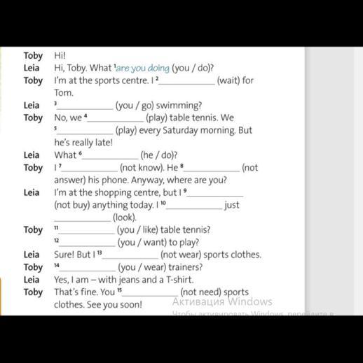 Toby: I’m at the sports centre. I’m waiting for Tom.