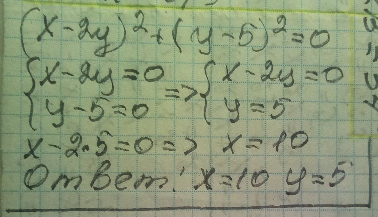 3.29. Розв'яжіть рiвняння: 1) (x - 2y)² + (y - 5)² = 0;​