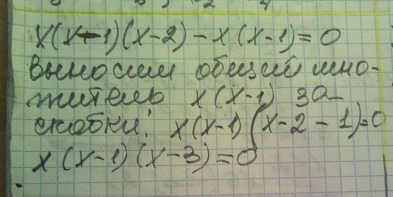 х(х-1)(х-2)-х(х-1)=0 переходит в х(х-1)(х-3)=0