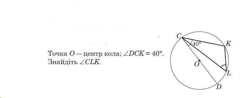 В ΔCDК угол ∠СКD=90 , тк опирается на полуокружность. Поэтому по свойству острых углов прямоугольного треугольника ∠СКD=90-40=50° ⇒ ∠СLK=∠СDK=50°