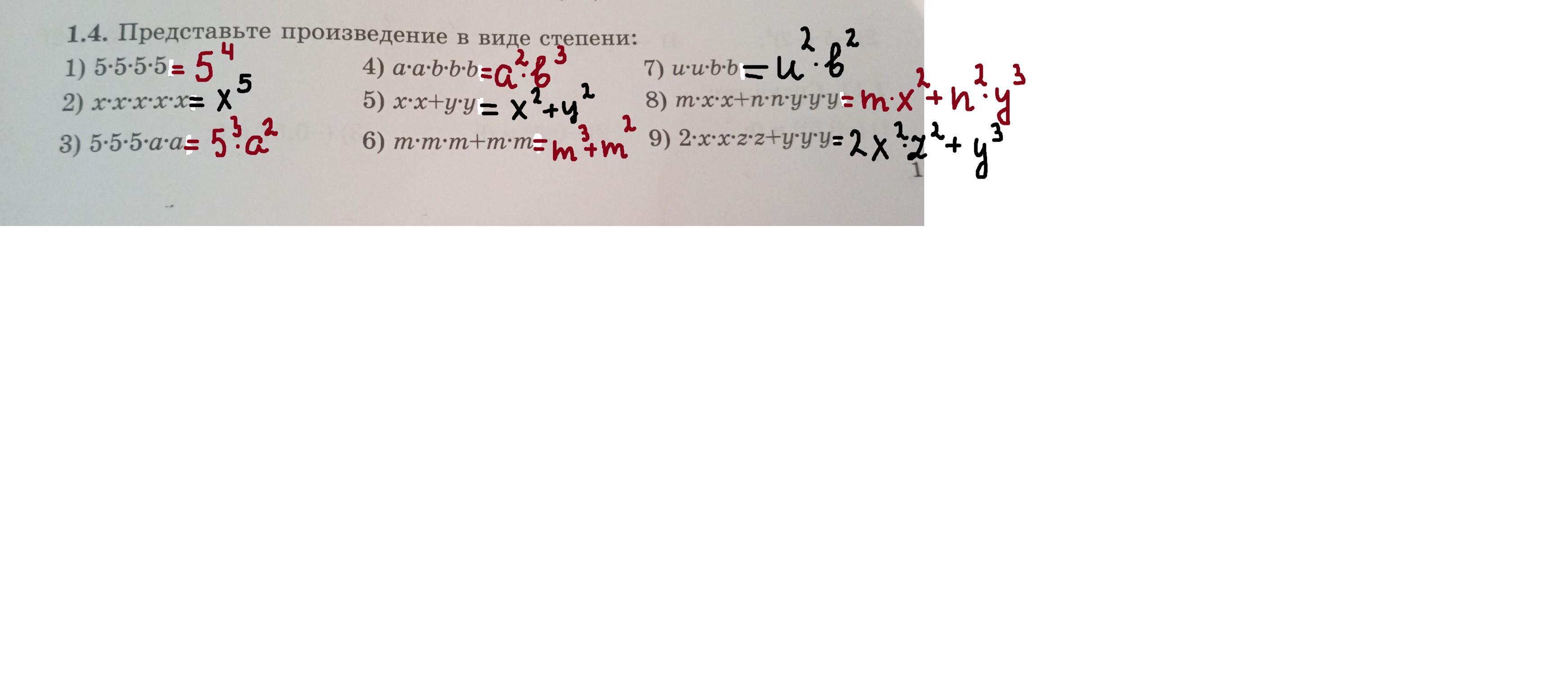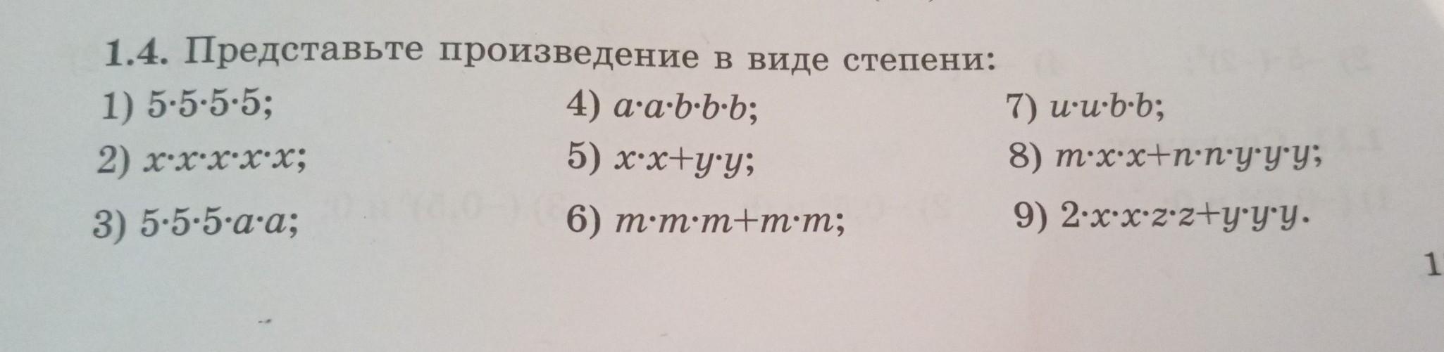 например в 4) получаем а²b³(читаем так: a в квадрате(так наз.вторая степень)на b в кубе(так наз. третья степень).
