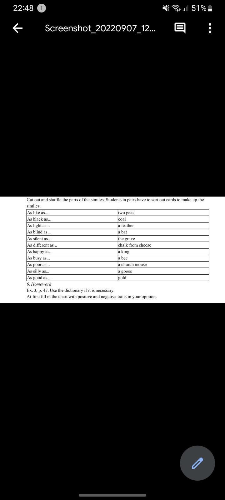 Cut out and shuffle the parts of the similes. Students in pairs have to sort out cards to make
