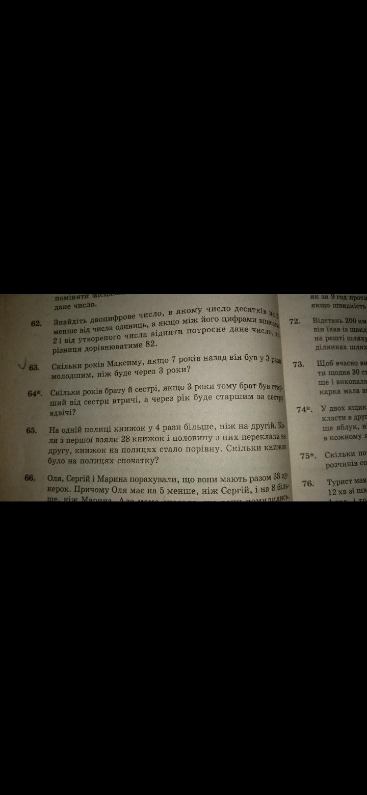 64. Сколько лет брату и сестре, если 3 года назад брат был старше сестры в три раза, а через год брат будет старше сестры в 2 раза.