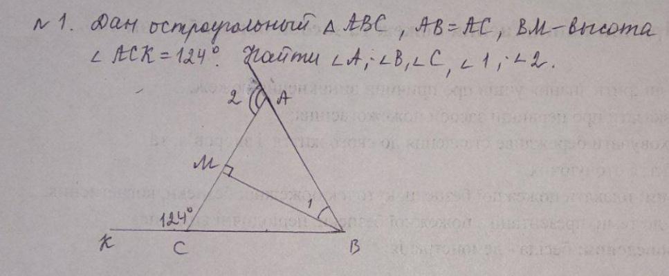Відповідь:∠А=∠С=56° ∠В=68° ∠1=34° ∠2=124°