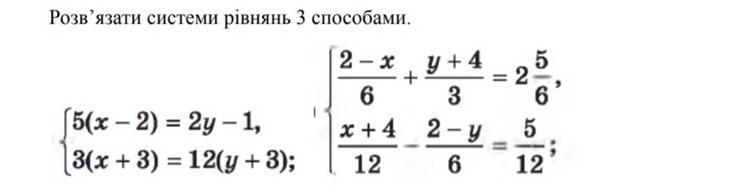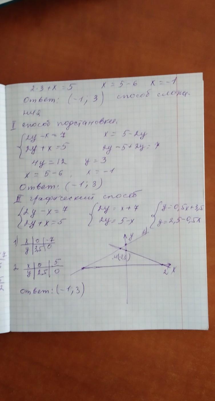розв‘яжіть систему рівнянь 3 способами, графічним методом,підстанови і методом додавання,7 клас
