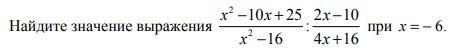 сократим (х-5)² и(х-5);(х+4)и(х+4);4и2; получим:2(х-5)/(х-4): подставим вместо х -6,получим: 2(-6-5)/(-6-4)= -22/-10=-11/-5=11/5=2 1/5