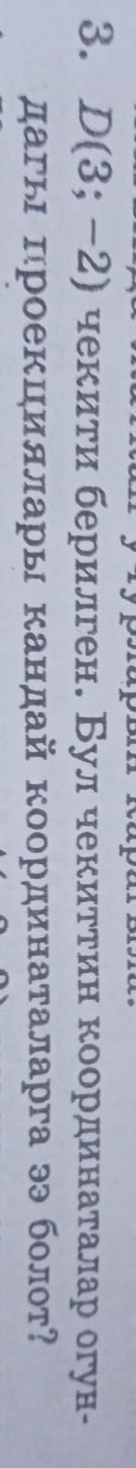 d(3: -2) чекити берилген. бул чекиттин кординаталар ору на проекциялары Кандай кординаталарга э болот?