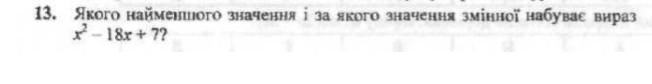 наименьшее значение выражения x²-18x+7= -74 при х=9