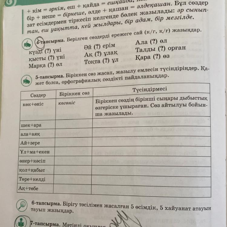 4 Өнер+кәсіп=өнеркәсіп Түсіндірмесі:Біріккен сөз дыбыстық өзгеріске ұшырамаған.Сөз айтылуы бойынша жазылады