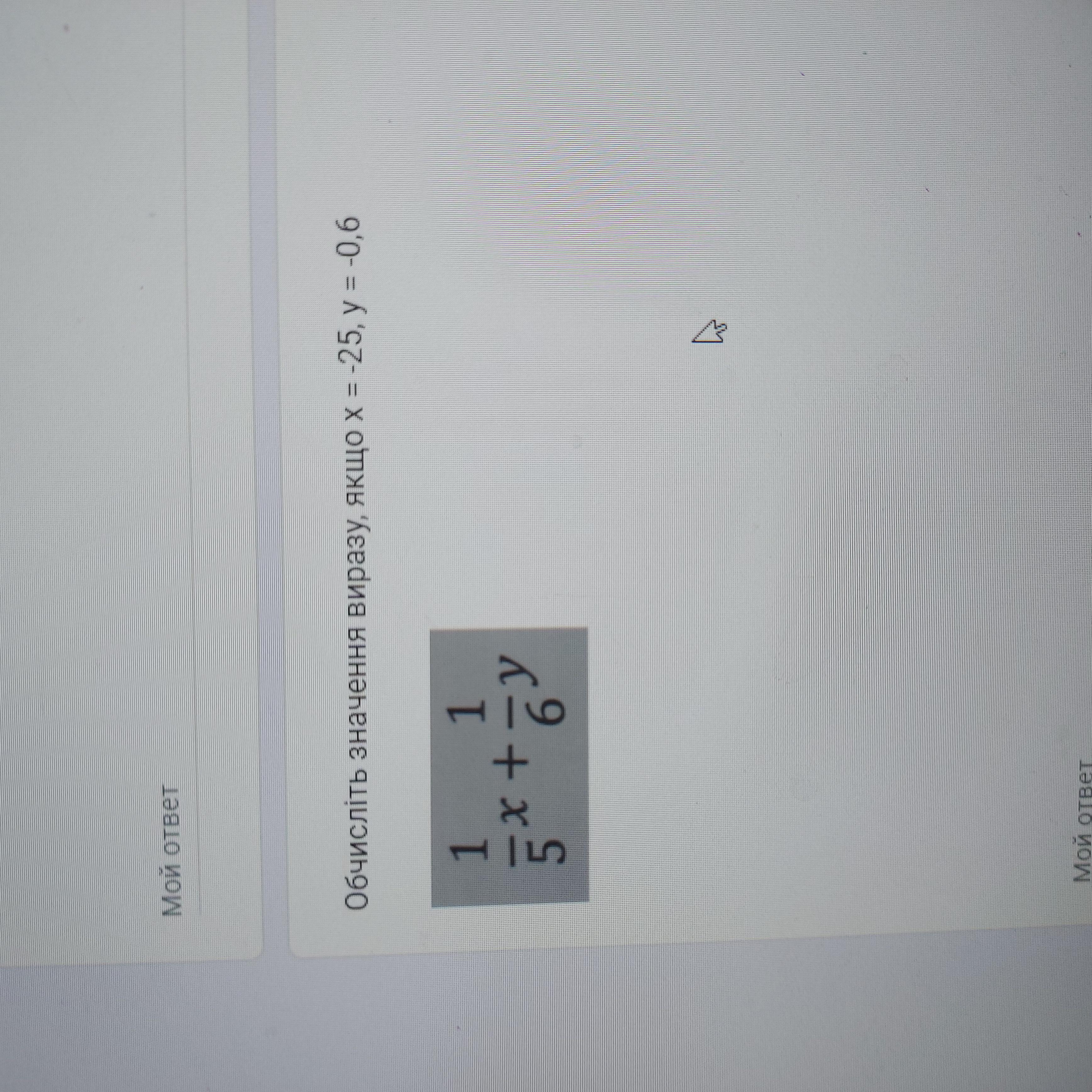 1/5х+1/6у=1/5×(-25)+1/6×(-0,6)=