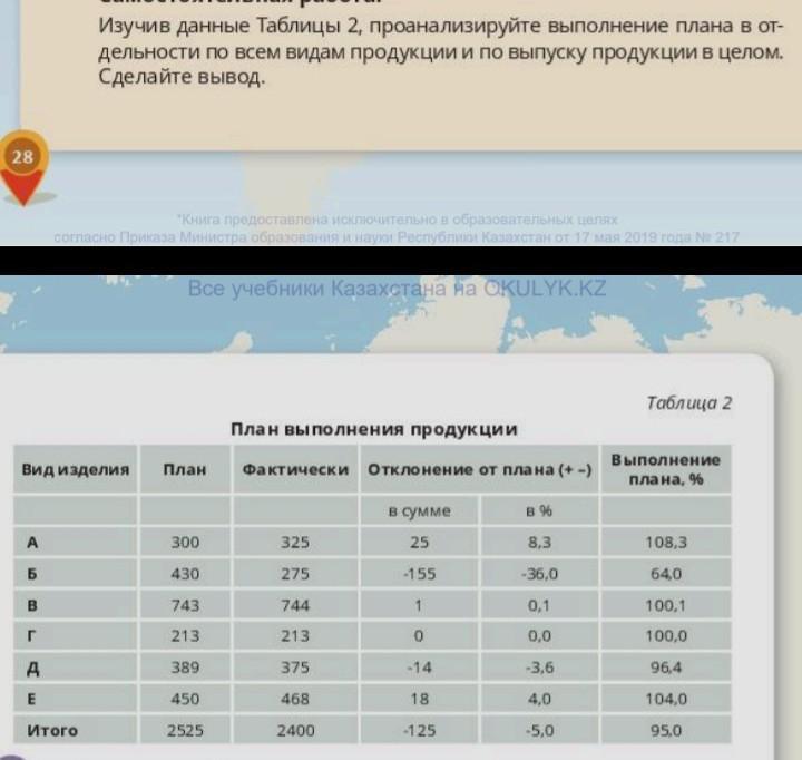 Изучив данные Таблицы 2, проанализируйте выполнение плана в от- Дельности по всем видам продукции и по выпуску продукции в целом. Сделайте вывод.