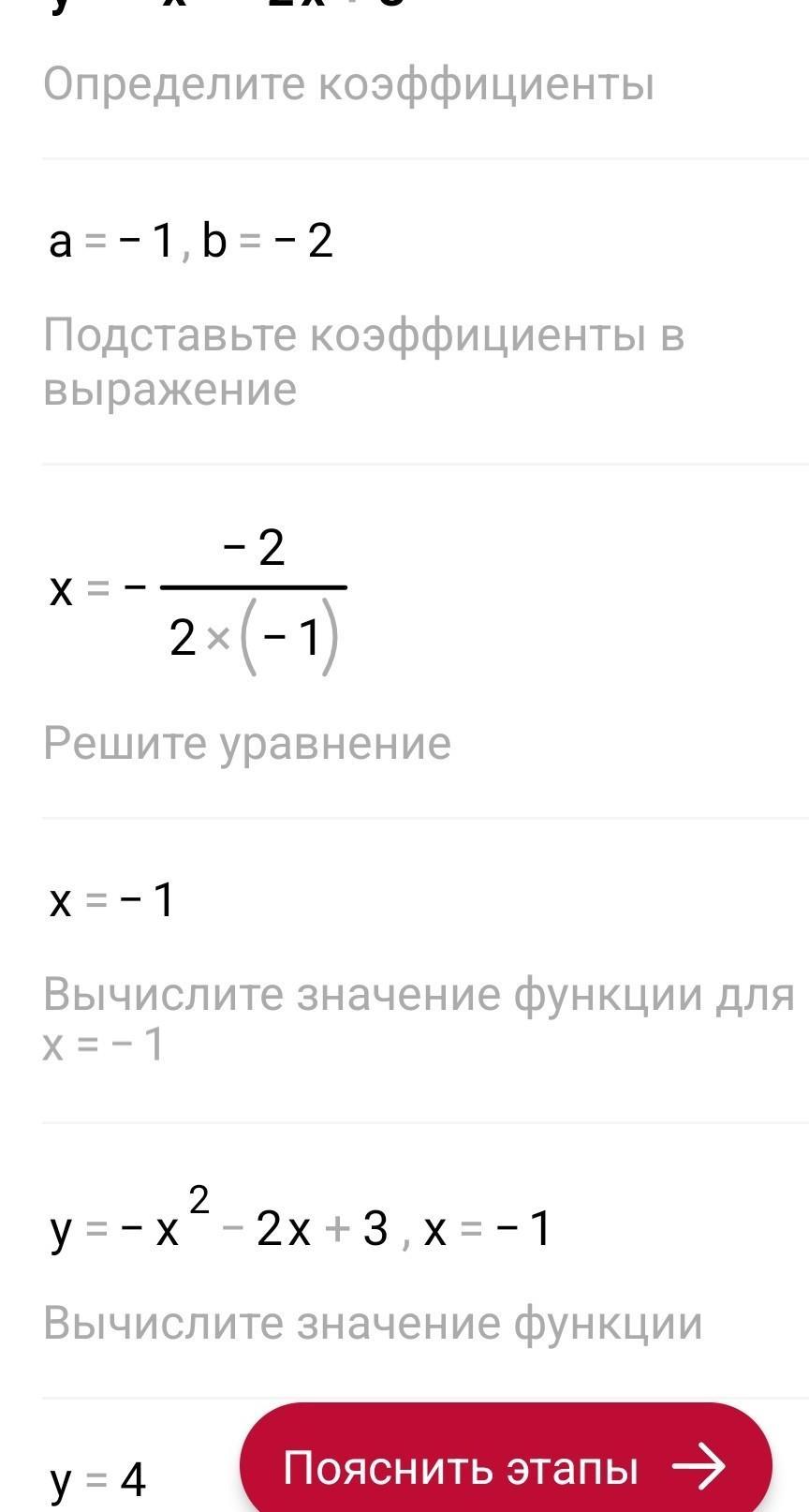 График какой квадратичной функции изображён на рисунке? 1)y = - x² + 2x +3 2) y = x²+2x + 3 3) y = x²-2x+3 4) y = -x²-2x+3
