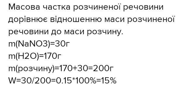 Натрій хлорид масою 30 г розчинили у воді об'ємом 170 мл. Обчисліть масову частку солі в розчині.( даю 50 баллов)
