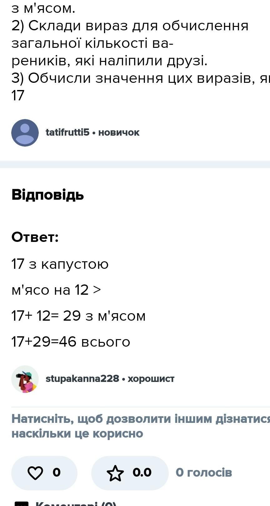 1) Склади вираз для обчислення кількості вареників